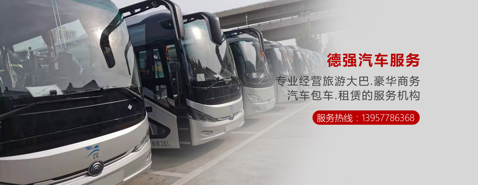溫州德強汽車服務有限公司是溫州市一家經國家政府部門批準的合法經營汽車服務有限公司,專業經營旅游大巴.豪華商務.汽車包車.租賃的服務機構。 公司服務范圍廣泛:為社會各界人士.政府機關.企事業單位.外商外資.廠礦團體等提供旅游包車.各種商務用車.單位公務用車.機場接送.動車接送.溫州包車.會議租車.班車接送等服務, 滿足您的需要,為君的生活、旅游、商務 提供優質、安全的服務保障。本公司車輛…